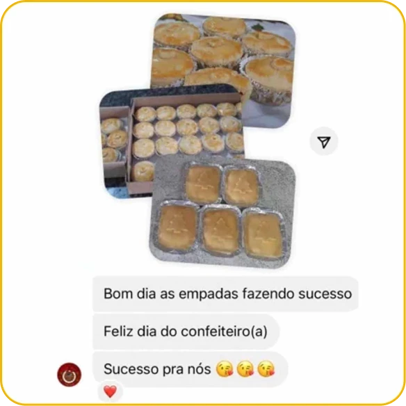 Nesse curso, eu vou te mostrar exatamente como fazer isso! Vou te ensinar a produzir, montar, congelar e vender empadas de forma prática, sem complicação.