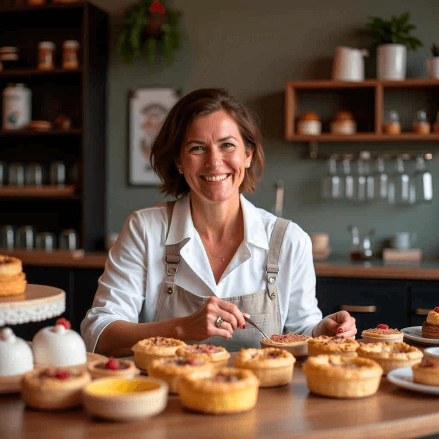 Hoje, meu propósito é ajudar mulheres a construírem negócios sólidos e prósperos na confeitaria, com processos simples e estratégias que realmente funcionam.