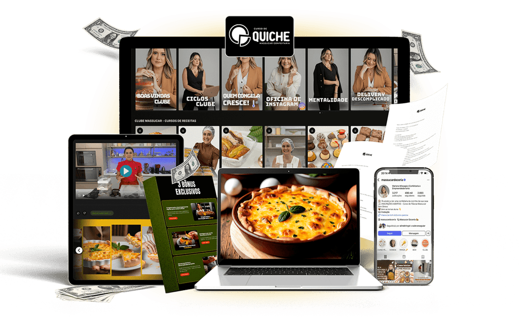 Você já tem tudo o que precisa para começar – só falta o passo a passo certo! Entenda como o Curso de Quiche da Massucar pode te ajudar a lucrar rápido, direto da sua cozinha, de forma simples e sem imprevistos
